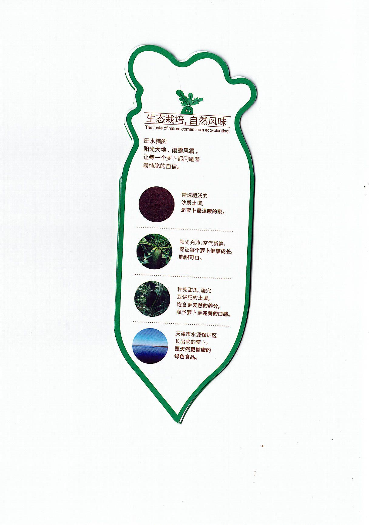 1.生物學(xué)特性:該品種青蘿卜的葉簇橫展匍匐,葉片綠色、羽狀全裂、葉柄淺綠色、肉質(zhì)根長圓柱形,根部稍彎,長20-25cm,橫徑約5-7cm。